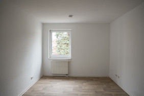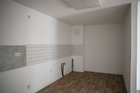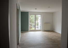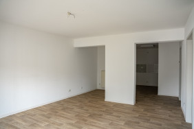 Die Wohnung befindet sich im 3. Obergeschoss des Gebäudeteils Thomasstraße 8 innerhalb der Kino-Passage Greiz. Sie verfügt über zwei Wohnräume – ein Schlafzimmer sowie ein Wohnzimmer mit integrierter Wohnküche – und einen geräumigen Flur.